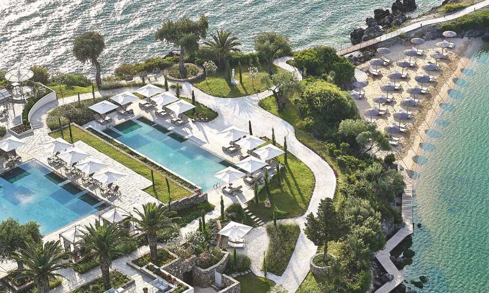 The mareblue beach resort is located in the quiet resort of aghios spyridon between the villages of kassiopi and acharavi overlooking a beautiful sandy beach.